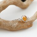 落ち着いたオレンジカラーのカイヤナイトを、アームに粒飾りをあしらった華奢なリングに仕上げました。