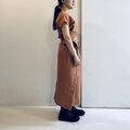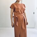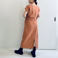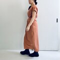 素材はリネンコットンlで、透け感はありません。お色はくすみオレンジのようなテラコッタカラーです。