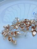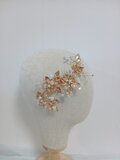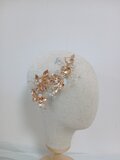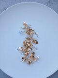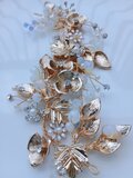 上品なゴールドカラーで仕上げた、リーフとフラワーモチーフの華やかなヘッドドレスです。