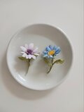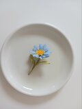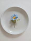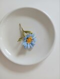 青いデージーは、白い綿布に形どり手染めしコテで創作致しました。