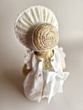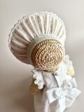 ボンネットは、土台は麦わらで薄手の素材とレースで飾った自慢のボンネットです。