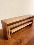 こちらはウォルナットを使用したディスプレイラックです。高級感のある質感で書斎、リビング、寝室など場所を選ばずに使用いただけます。