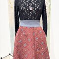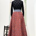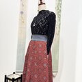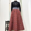 大島紬ボートネックプリンセスラインワンピース 季夏無事届きました。素敵な柄で、大島紬特有の濃い藍色に赤の花が散りばめられてシックだけれど華やかです。ろ〜たすむさしさんのスカートも何枚か持っていますが、縫製がとても丁寧で大島紬はシワにならず、軽く、暖かく、涼しい素材が気に入ってます。