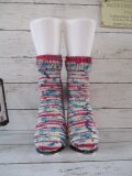 *編みあがり後、水通し&ブロッキングをしてますが、手編みの為履かれる前にお洗濯をお願いします。