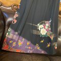 和洋折衷 黒留袖 着物 リメイク ロング ワンピース ドレス 洗える 化繊 ハンドメイド レトロ TKW-74