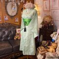 【着物リメイク セミロング ワンピース ドレス|洗える化繊+帯サッシュベルト|和洋折衷 レトロ 古着 ハンドメイド|淡くやわらかな薄翡翠 KW-1060】