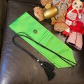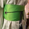 合わせの帯ベルトはフレッシュな若草グリーン。