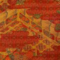 赤の濃淡に金茶がやわらかくきらめき、アンティーク友禅のような奥行き。