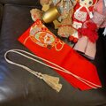 帯ベルトは晴れやかな朱赤に手毬風の刺繍、シャンパンゴールドのタッセルコードがきらり。装いを凛とまとめます。