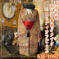 【着物リメイク ミニミディ ワンピース|洗える化繊素材&帯サッシュベルト付き レトロ 古着 ハンドメイド 煉瓦寄りの海老茶をベースと梅の花 KW-1063 】