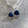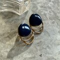 P714-ヴィンテージピアス U.S.A. 1970〜80s Gold Tone Navy Enamel Paint Oval