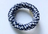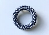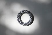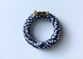 木材をドーナツ板に加工して毛糸を巻いたブローチです。