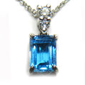 このペンダントはクオリティの高いエメラルドカットのブルートパーズとスワロフスキージェムでデザインし丁寧に手作りで作り上げた一点物ジュエリーです。