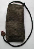 袋の口の片側に、ループの輪をつけ、中にループの端を通して結ぶようにしてバックや腰に下げるようにしています。