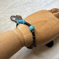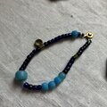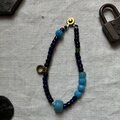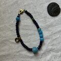 反対側にはインドのブラスチャーム(現行品) 留め具脇にも水色シードビーズとみかん玉