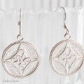 透かしのコインチャームのドロップピアス・銀線細工のフラワークロス(ch73-pa-si)silver925