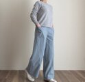 アウトポケットがポイントのコットンワイドパンツは股上が深いので穿きやすい楽ちんパンツです。
