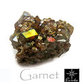 今回ご紹介するのは、日本・奈良県産のレインボーガーネット結晶原石です。2~3mmの結晶がほぼ全面にみられるクラスター状で、光を受けるたびに虹色の輝きを放ちます。