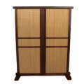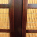 中部は天然木シナ材を使用しオイルステイン、ライトブラウンに着色後すだれ状に編んだ木簾です。