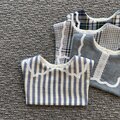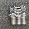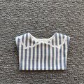 スカラップレースでえり型をステッチ、ストライプ柄のブラウスみたい