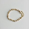 ガラスパールオールノットブレスレット/約6mm約17cm+2cm/ベージュmix/G/made in japan