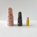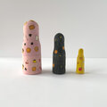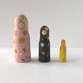 ちょっと細長い、珍しいかたちのマトリョーシカ3個組です。