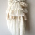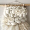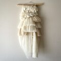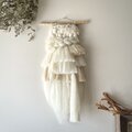 みるく色のふわふわ羊毛やコットン、極細ウール、ファンシーヤーン等と組み合わせた、素材感も楽しんで頂ける印象的な一点もののタペストリー。