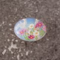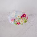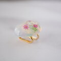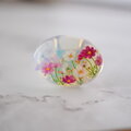 天然石オパールとコスモス、金箔の帯留め ポニーフック ブローチ クリスマス 成人式 秋桜