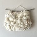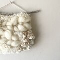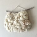 みるく色のふわふわぷっくりとした羊毛や、極太モール糸、モヘア、ファンシーヤーン等の素材感も楽しんで頂けるよう組み合わせた、一点もののタペストリーです。