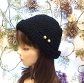 初秋 帽子 バケットハット パールブローチ付き ブラック