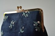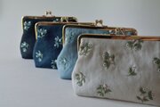 がま口ポーチ他、内布には表地の刺繍を際立たせる為に敢えて柄の無い布を使用しています。