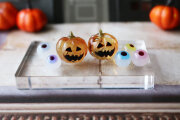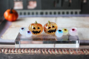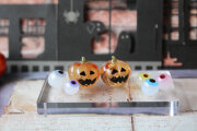 ガラスで制作した小さなジャックオランタンと目玉です。