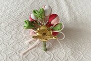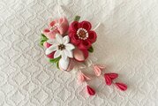 ちりめんで制作したつまみ細工の梅と小菊、鞠のようなちりめん玉の髪飾りのセットです。