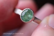 この子はシャインマスカットのようなライトグリーン!内部クラックとインクルージョンにより光が石の中で乱反射してまるで光るなにかを石の中に閉じ込めているような錯覚に陥ります。