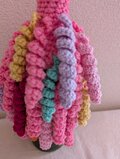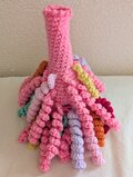 カラフルな毛糸を使って編んだ、ポップな印象の編み物オブジェです。