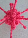 カラフルな毛糸を使って編んだ、ポップな印象の編み物オブジェです。