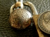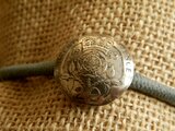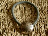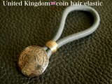 英国の20ペンス裏側をヘアゴムと芯合わせしコンチョ型に加工した作品です。