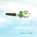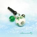 白地にグリーンの花模様が描かれた陶器ビーズを主役にした、イヤホンジャックです。