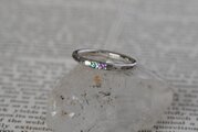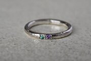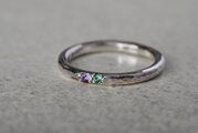 今回はシルバーの槌目リングをベースにアメジストとエメラルドを組み合わせて制作を行いました。神秘的な二色の色の組み合わせが心を落ち着かせてくれるような気がします。