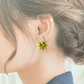 不透明で黄色味が強めなキミドリ色にところどころブロンズカラーがはいっているのでおしゃれな雰囲気のピアスです。