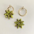 【キミドリ×ブロンズ】チェコガラス製オーナメントチャームの2wayフープピアス