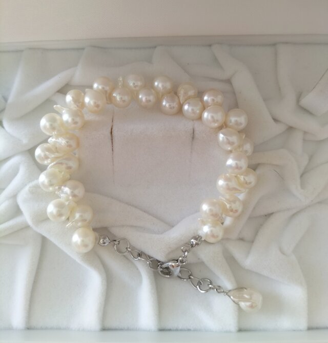 真珠の頭がとがったバロック真珠を使用して作成させて頂いたブレスレットでございます。