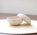 釉薬の色が冴えるきめの細かな白陶土で制作した、ころんと丸い蓋ものです。