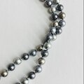 こちらはガラス素材の原玉に、オリジナルパール塗料にて何層にも渡り重ね塗りを施した日本製ガラスパールを使用しております。パール間には1つづつ丁寧に結び目を加えたオールノット仕様にしました。更に金具類を一切使用しないエンドレス加工にて仕上げていますので金具の付け外しも無く手軽にお使い頂けます。パールカラーはきめ細かい質感と優しい艶感が特徴のオリジナルグレー系カラーパール各種。複数の異なるカラーをランダムに使用。パールサイズは直径約6mmで、長さは服の上からでも気軽に着けられる全長約80cmに。ちょっとしたお出かけや普段使いにも気軽にお使い頂けます。