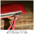 丈夫な皮革専用糸で縫製し、コバ部分も一つずつ丁寧に磨き仕上げをしてあります。