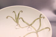 白磁に貝母の花を描きました。色々なお料理の取り皿に使えます。