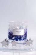 キャンドルを灯すと紫陽花と星のスパンコールがさりげなく輝いて、
