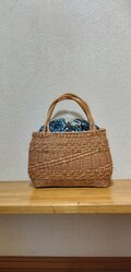 いつもの籐かごバッグは持ち手が片側1本ですが、この籐かごバッグは片側2本取り付けてより安定感、持ちやすくしてみました。