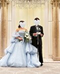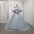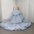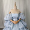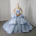 実例写真!カラードレス ブルー ベアトップ 取り外し袖 ラッフルフリル キラキラチュール 前撮り