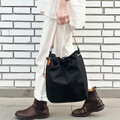 撥水加工で丈夫!A4サイズも入る巾着バッグ BALON:ブラック×ベージュ(CORDURA 撥水加工ナイロン)